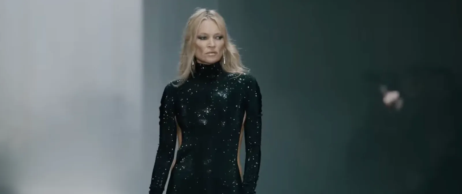 Questa catwalk semplicemente illuminata da una luce bianca fissa riprende le iconiche sfilate anni ‘90